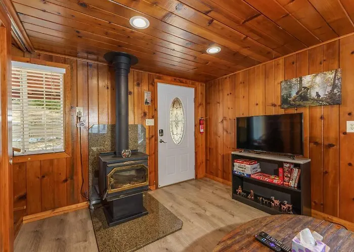 Acorn Cabin - Charming Place, Your Getaway To Yosemite, Bass Lake with the garden view offers to benefit from climate control, as well as a flat-screen TV with satellite channels. Bathrooms are also equipped with a dryer and towels for your comfort.